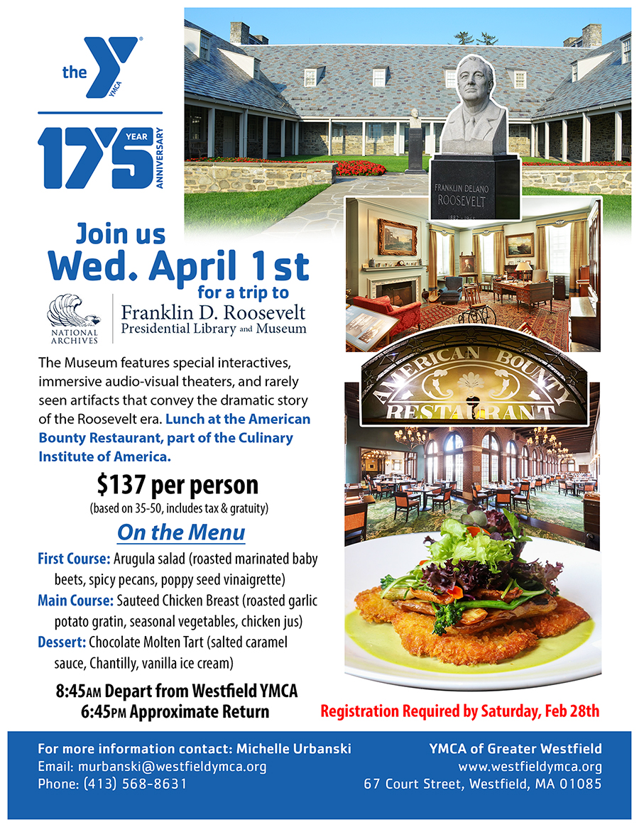 Join us for a trip to the FDR Museum with lunch at the American Bounty Restaurant