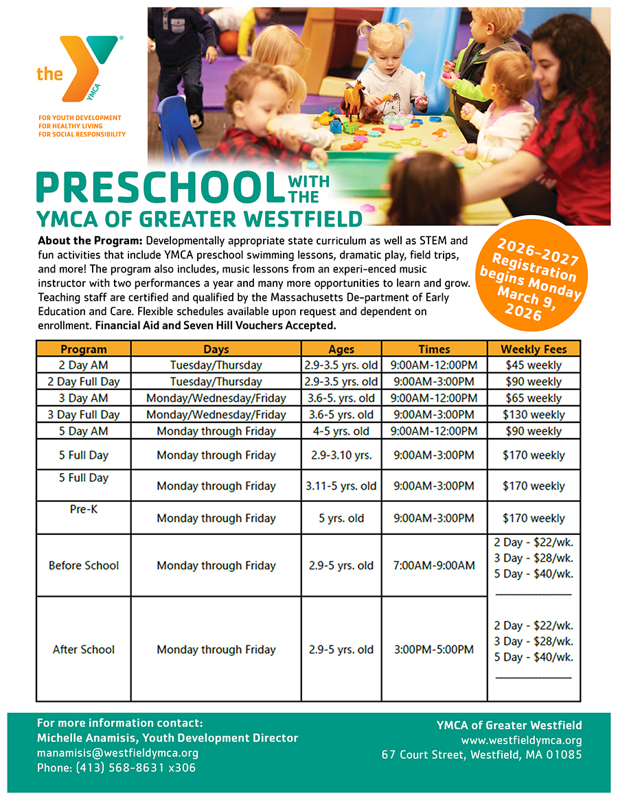 - Forms can be found at westfieldymca.org or by stopping by the welcome center of the YMCA.